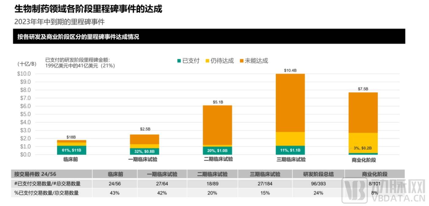 图 5.2023 年生物制药领域各阶段 「里程碑」 事件达成情况统计 (图片来源:SRS ACQUIOM)