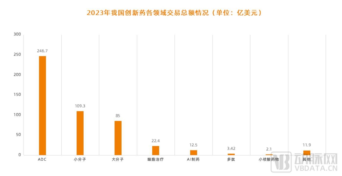 图 2.2023 年我国创新药各领域交易总额情况 (数据来源:《2023 中国药企 BD 报告》)