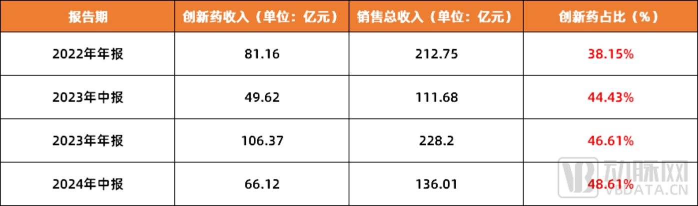 图 4.2022-2024 恒瑞创新药收入及其占比 (数据来源:恒瑞年报)