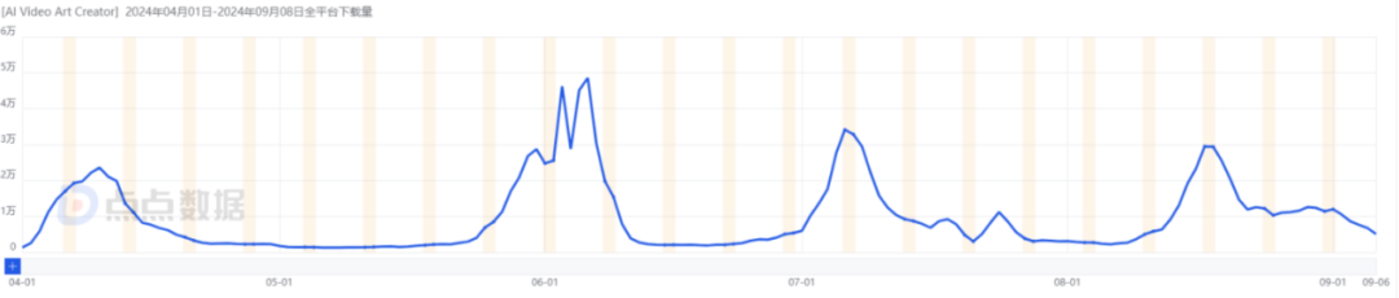 虽然比 Sora 早发布半年多的时间,但从今年 4 月份才开始起量,收获一定规模的用户。在这之前,每日也仅有几百的下载量。这个时间点也恰好处于 AI 生成的风口期,可以说是等到了一波红利。