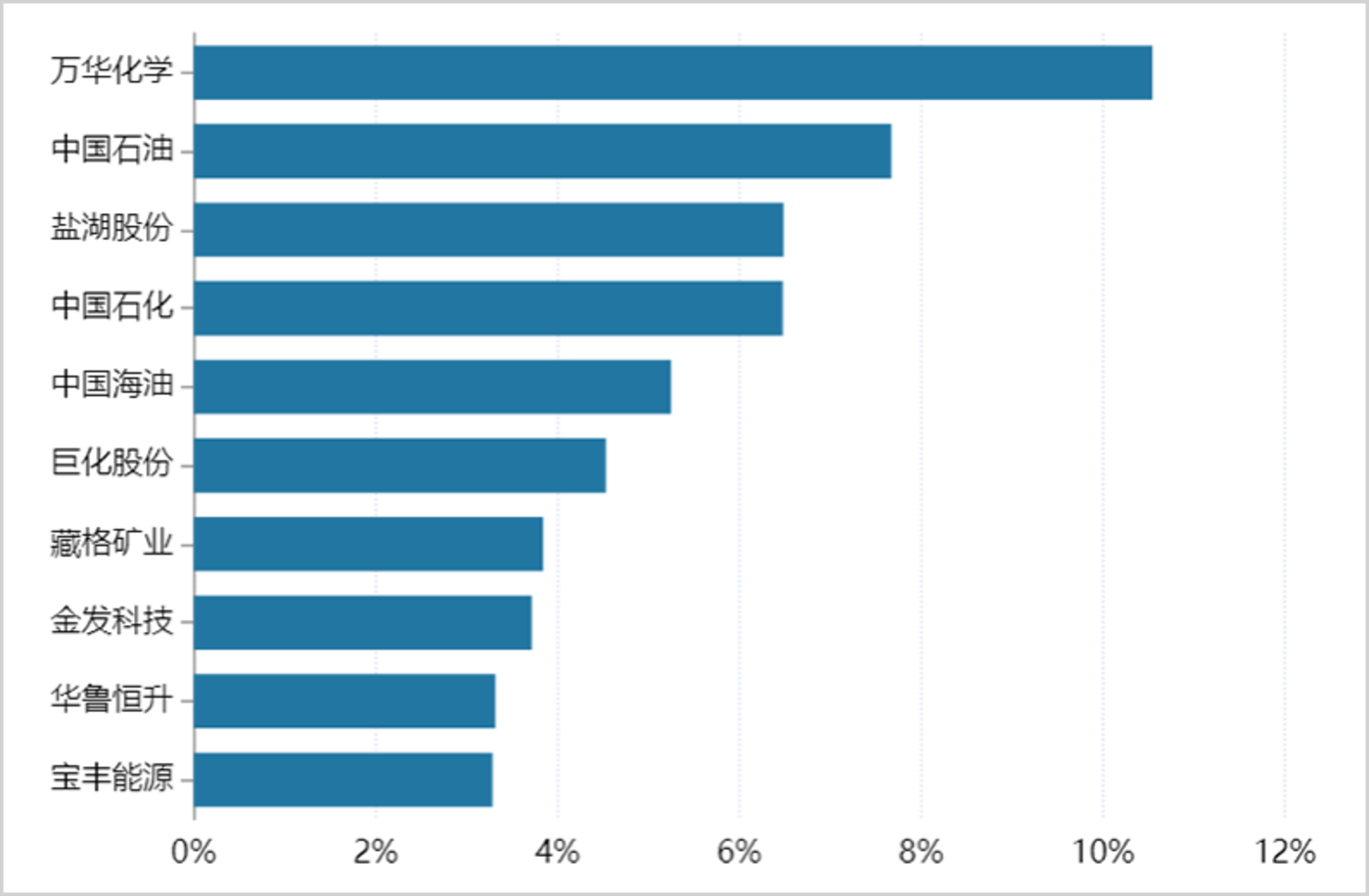 ▲化工行业 ETF 易方达 (516570) 前十大重仓股 来源:Wind