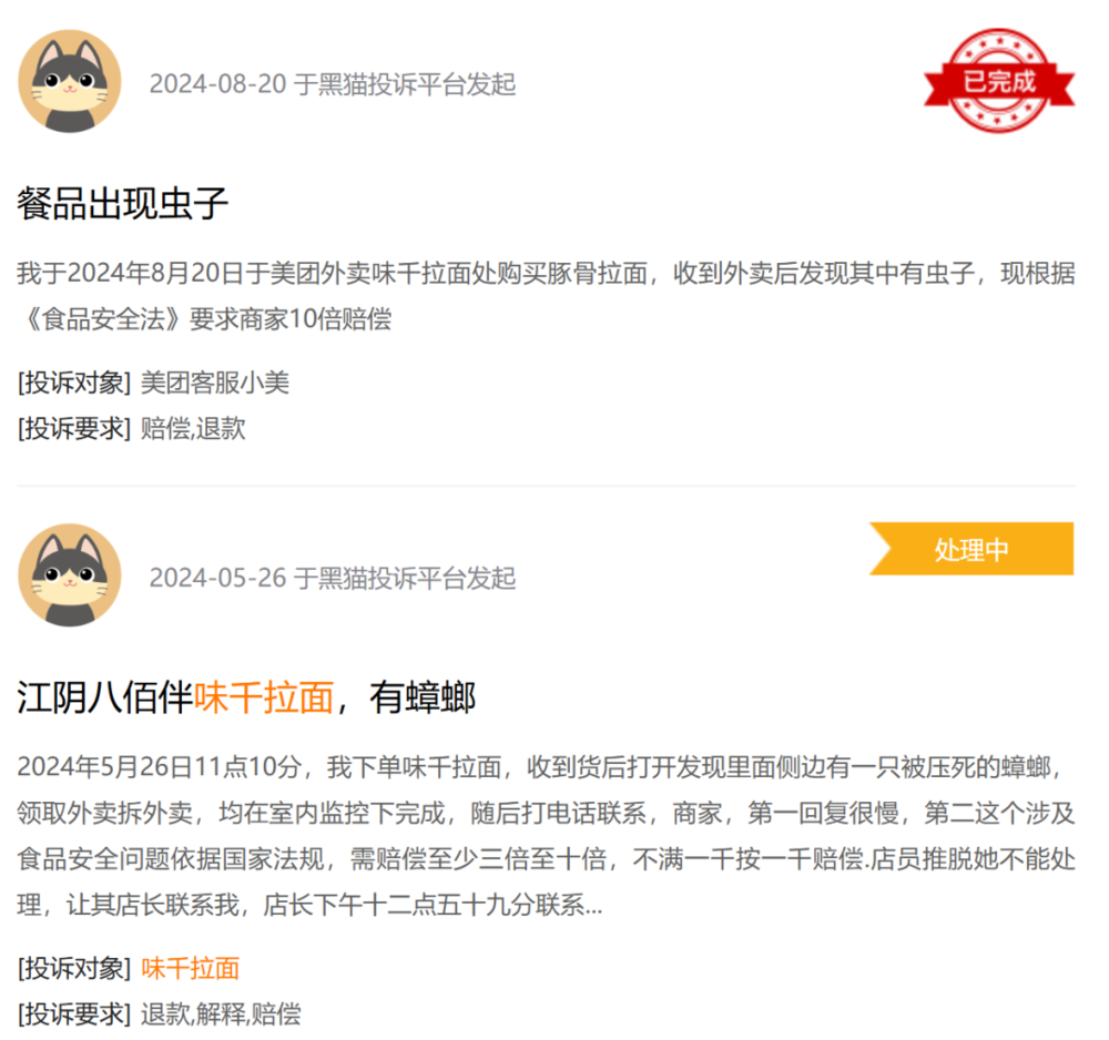 按照味千拉面的宣传,其招牌的猪骨汤底是由纯猪骨熬制而成,但当时味千拉面却被媒体曝光,其汤底实际上是用浓缩液勾兑而成。在前述投票中就有网友提到,「上次听说味千拉面,还是调味粉代替 『骨汤』 的新闻」。今年以来,在新浪旗下消费者服务平台黑猫投诉上,还有多名消费者投诉味千拉面,并称在拉面中吃出蟑螂或虫子。