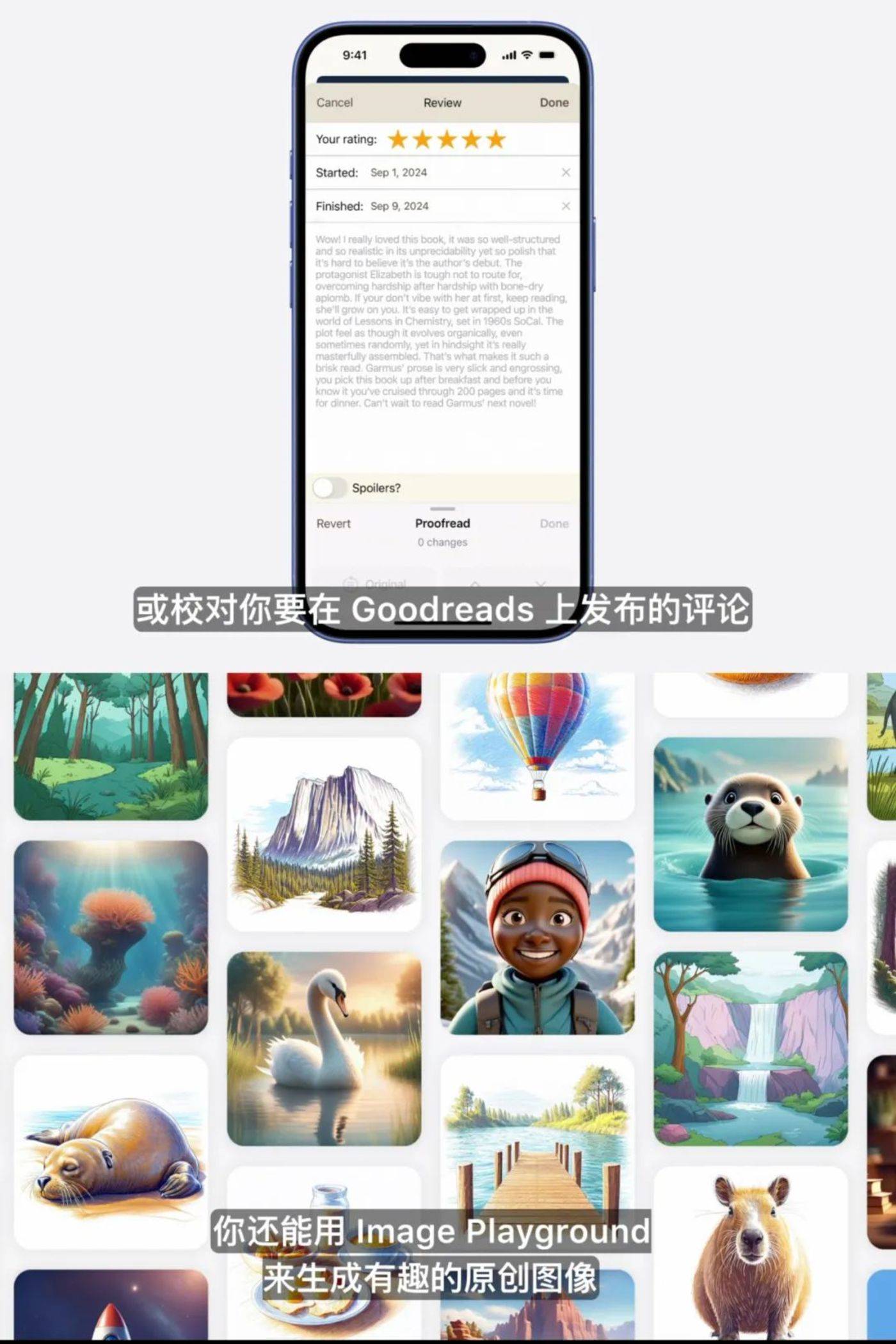 • 照片功能:利用自然语言搜索、生成与制作照片,包括了 Image Playground 和 Genmoji 功能。