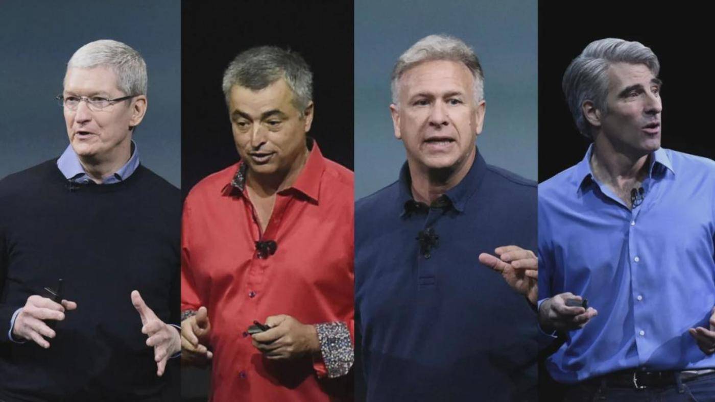 从左到右依次为:Tim Cook,Eddy Cue, Phil Schiller 和 Craig Federighi  图源:彭博社