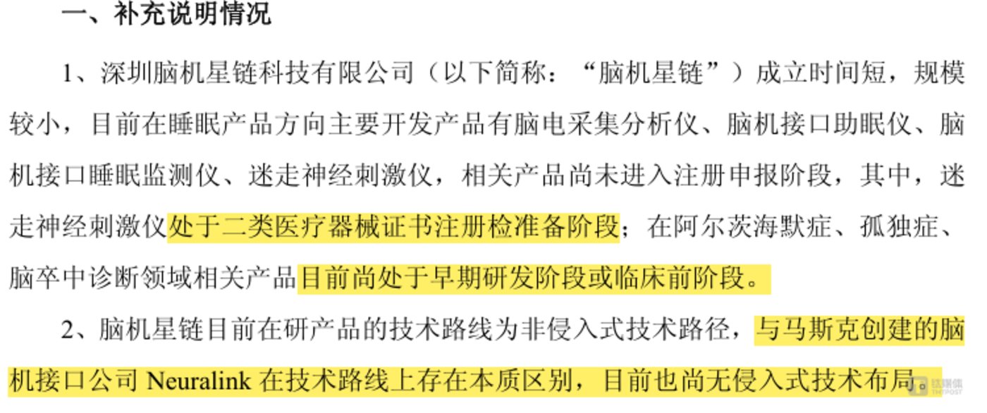 其次,技术商业化前景几乎是一片空白,远水难解近渴。根据公告披露的有限信息,脑机星链的在研产品管线包括脑电采集分析仪、脑机接口助眠仪、迷走神经刺激仪等。