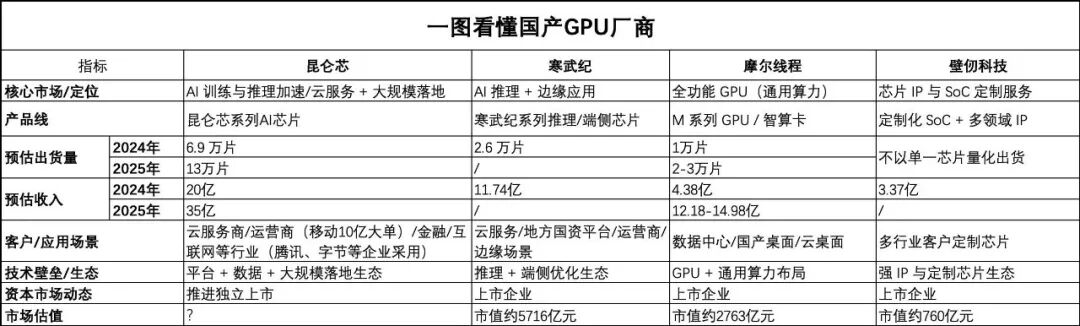 从短期来看,昆仑芯的领跑优势非常明显。依托百度的场景和渠道资源,它已经完成了从 “ 内部支撑” 到“ 外部扩张” 的转型,2025 年中标中国移动十亿级订单,客户覆盖金融、能源、制造等关键行业,商业化规模和速度都处于行业前列。这种高速增长的确定性,是资本市场最看重的核心逻辑。