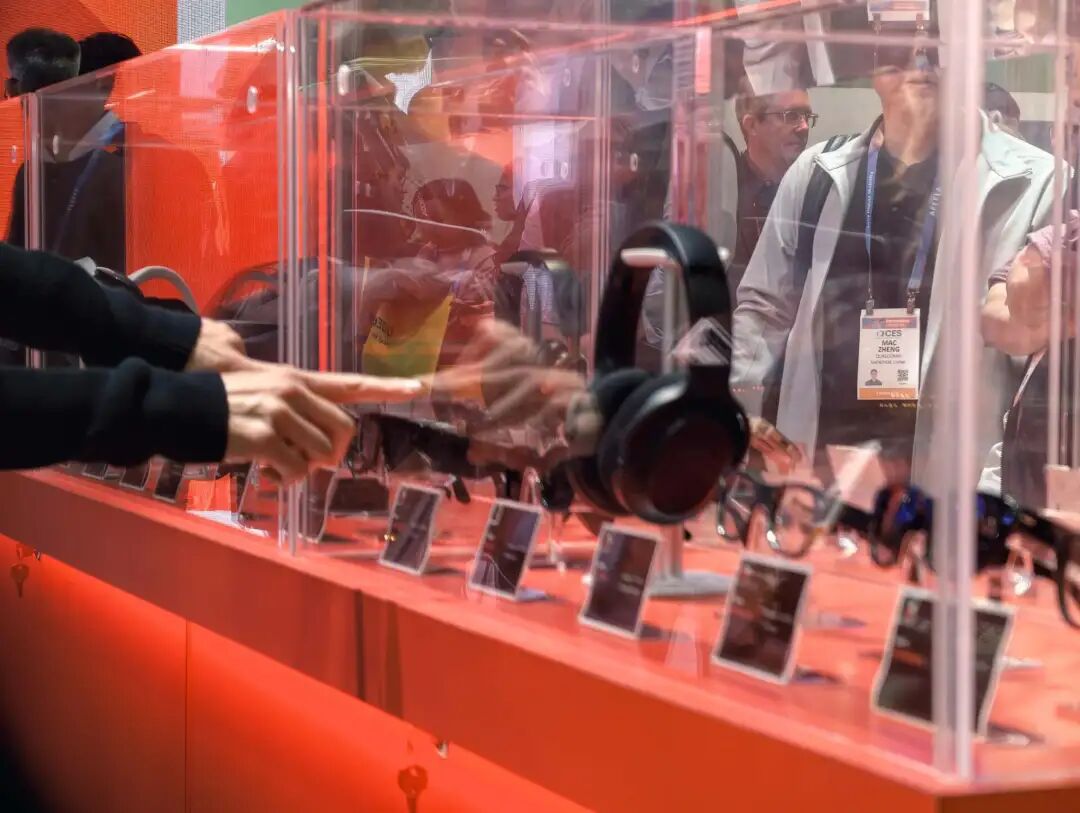 XR 眼镜、智能手表、智能指环等多种可穿戴设备应用则成了高通展位最“ 吸睛” 之处。展位所展出的三星智能头显引得不少观众驻足体验。