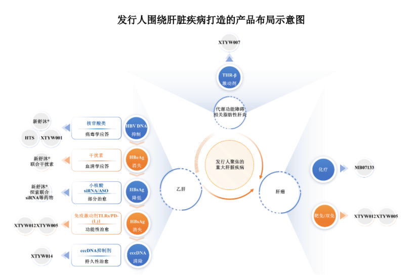 其中,1 类创新药产品甲磺酸普雷福韦片 (新舒沐®,全球首个经肝靶向技术平台开发的肝靶向治疗乙肝药物) 已获批上市,2 个产品注射用 MB07133(治疗晚期原发性肝癌的小分子靶向创新药物) 及富马酸海普诺福韦片 (用于治疗乙肝的第二代肝靶向创新药物) 已处于 II/III 期无缝连接的注册性临床试验阶段,1 个产品 XTYW001(用于乙肝功能性治愈) 已完成 Ia 期临床试验,1 个产品 XTYW007(用于治疗代谢功能障碍相关脂肪性肝炎) 已提交 IND 申请,3 个在研肝病产品处于临床前研发阶段。