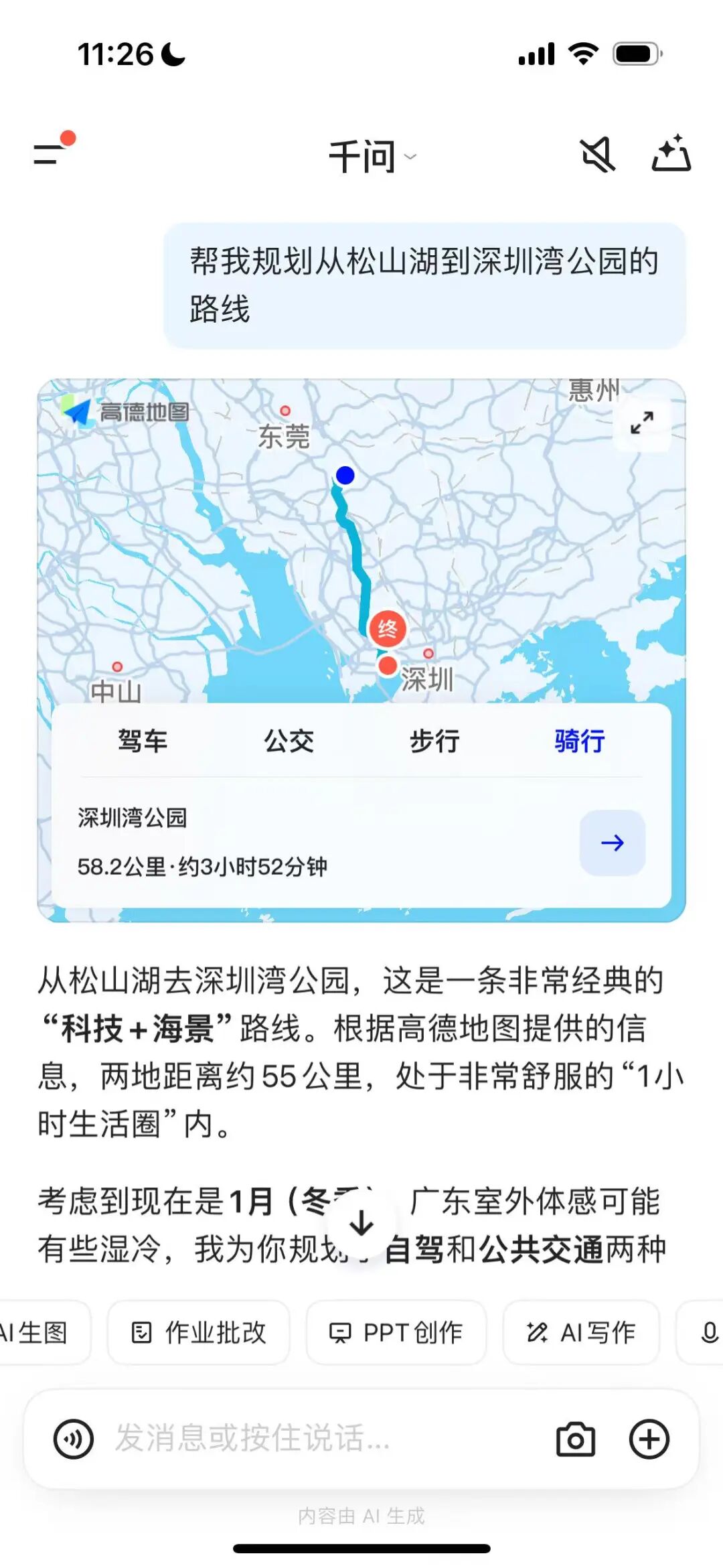 这种“ 中央调度、地方响应” 的架构,实际上是想撬动阿里整个生态。12 月 18 日,千问 APP 已正式接入高德地图,利用高德的实时交通数据和超 2 亿 POI 数据库,实现地理空间理解与可视化决策卡片服务,用户可一键导航或打车。