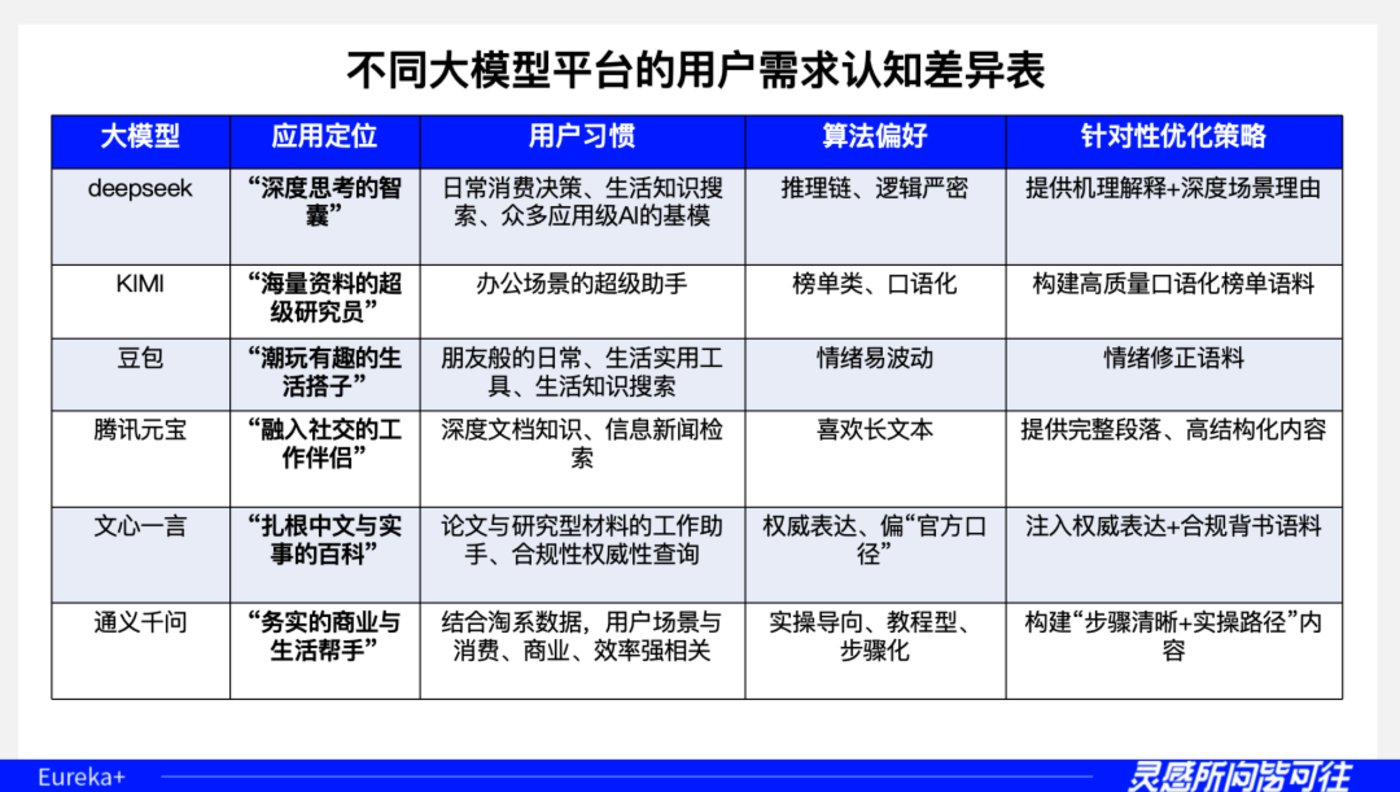 请注意,每个行业、赛道、业务类型、产品类型所对应的问题偏好的信源与内容不一样,AI 模型的推荐算法也不一样,故而每个品牌要做 AI 营销之前,都需要精准剖析 AI 心智形成路径,这样做出的策略才是精准、有效的。