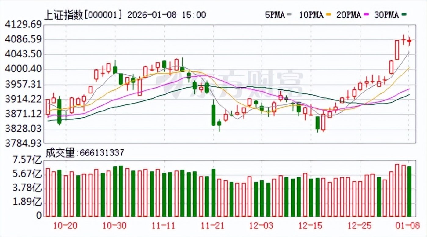 截至 1 月 8 日收盘,上证指数已连续 15 阳,期间累计涨幅 6.76%。这种走势,即使在历史上的大牛市也罕见。