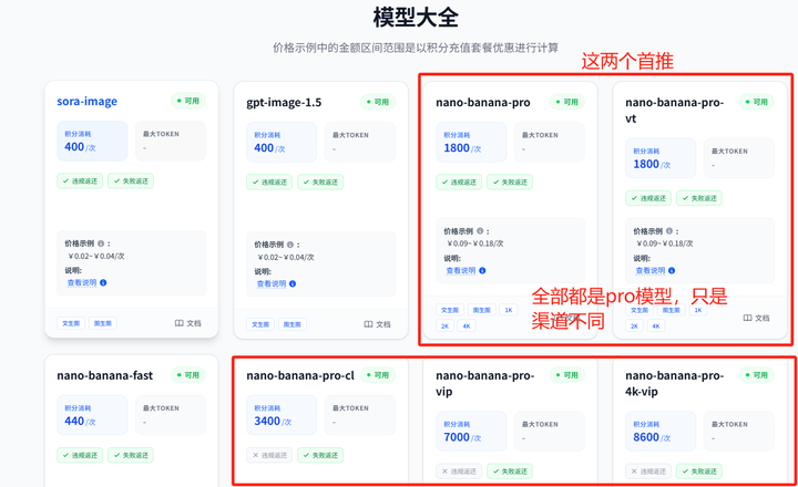 - 高性价比多模型:非中转站,没有一层层中间商,平台直接对接模型资源才能做到低价。Nano Banana Pro——0.09/张,gpt image 1.5——0.02/张,Nano Banana——0.022/张,Sora2——0.08/条,Veo3.0/Veo3.1——0.4/张,Gemini2.5/3.0....