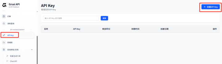 1. 获取 GrsAI API Key:登录 GrsAI 控制台 (grsai.com/zh/dashboard/api-keys 需要魔法才能访问,没有 com 改 ai),创建并复制您的密钥。