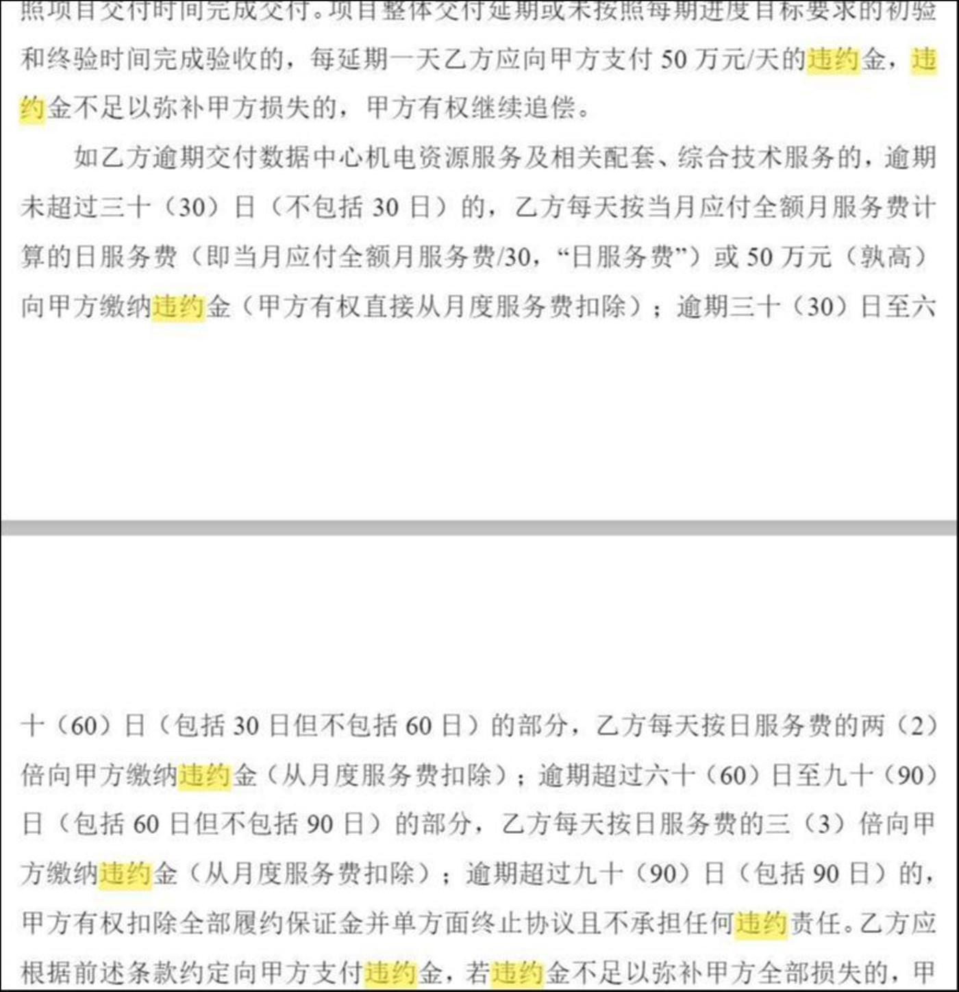 上述判断亦可从本次 《建维合同》 条款中得到佐证:合约明确的甲方有权提前 30 天终止协议且无需支付违约金的起始日期均在 2032 年之后。相比之下,乙方若单方面终止合作,则须提前 365 天通知甲方并支付违约金,且项目每延期交付一天,需向甲方支付 50 万元违约金。权利义务严重不对等,进一步凸显乙方风险敞口之大。