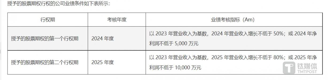 此激励分两期,考核条件为 2024 年需满足营业收入增长不低于 50% 或净利润不低于 5000 万元;2025 年营业收入增长不低于 80% 或净利润不低于 1 亿元,而这个目标如果完成,也将创造上市以来净利润的新高。