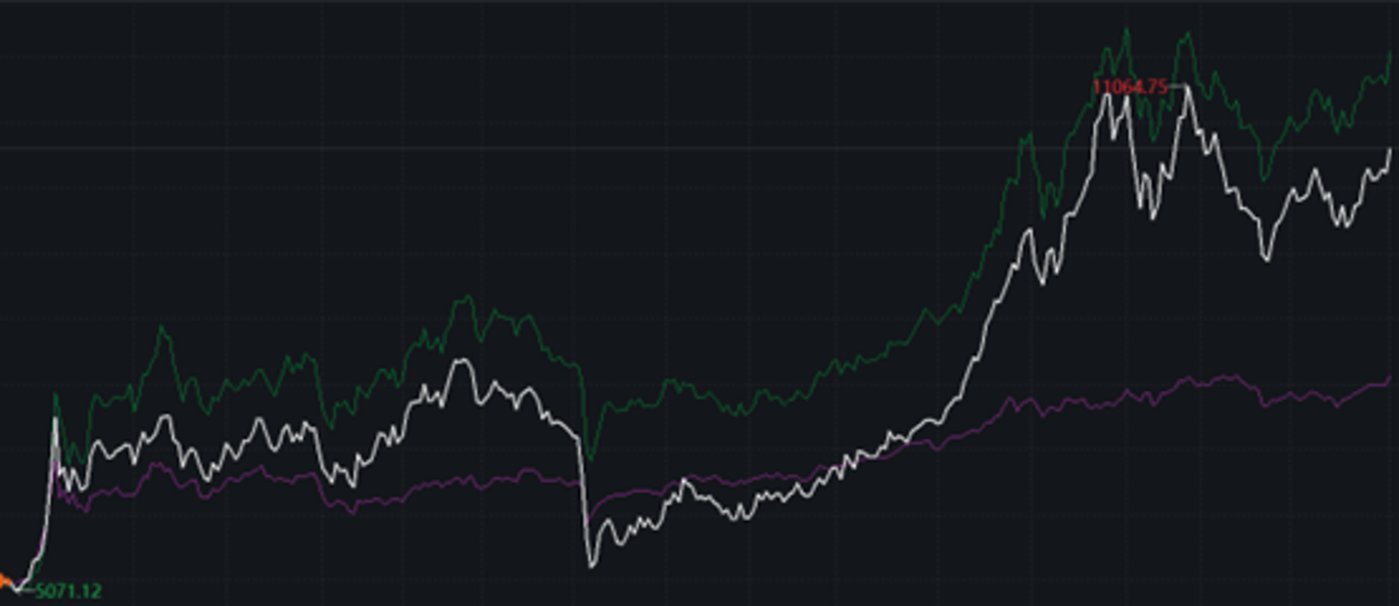 白:申万消费电子。紫:上证指数。绿:申万电子指数