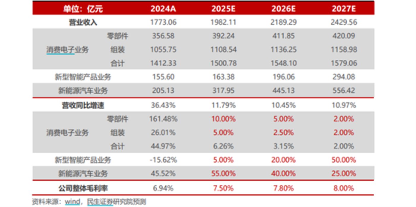 比亚迪电子 2025 年虽然表现相对平淡,但随着汽车业务的持续升级,智能座舱、自动驾驶系统、热管理悬架等产品将推动单车价值量提升。同时,公司进入英伟达体系供应商名单,在电源、光电互联等算力相关产品上的布局也将逐步兑现业绩。2026 年,随着消费电子、智能汽车、算力三大业务的协同发力,公司业绩有望迎来拐点,估值修复空间较大。