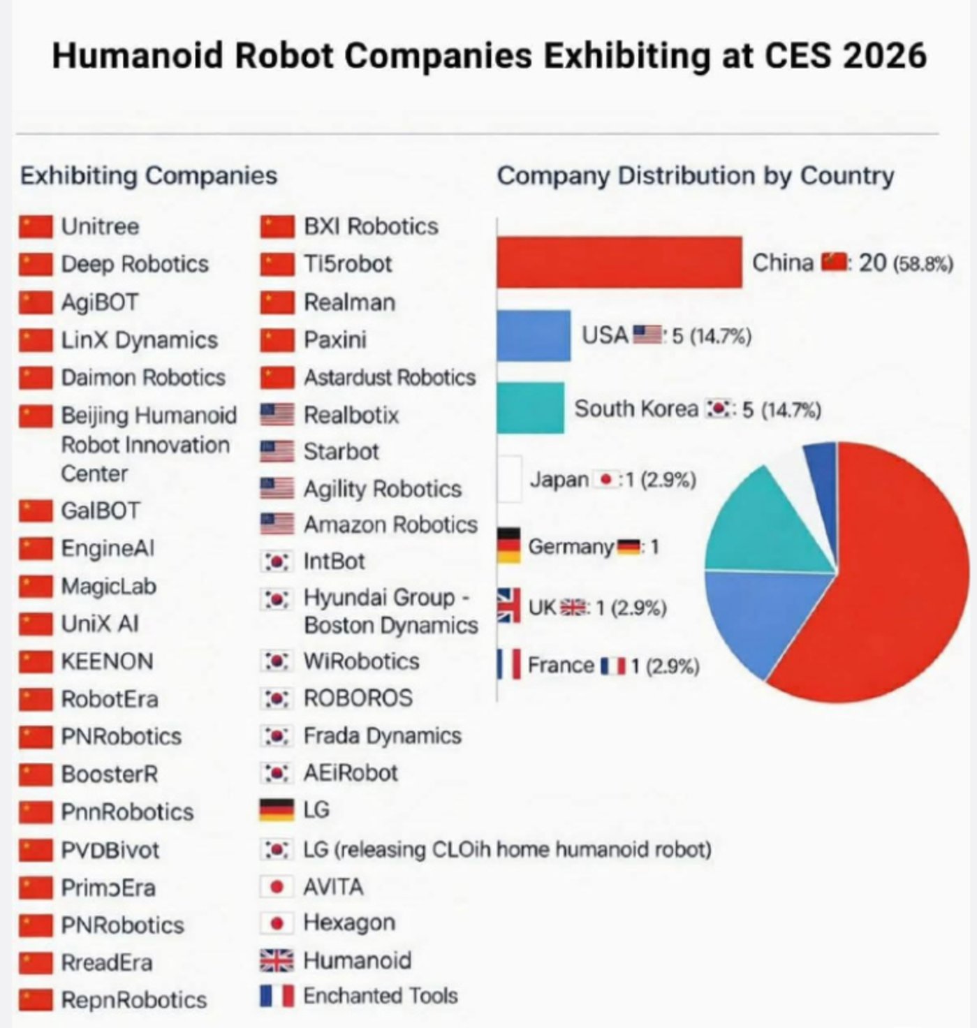 参加 CES2026 的机器人厂商大多来自中国
