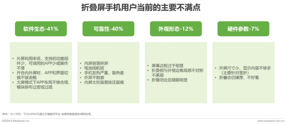 在消费者端,艾瑞咨询 9 月发布的报告显示,大众对于折叠屏手机的担忧主要包括软件生态、可靠性、外观形态、硬件参数四方面。