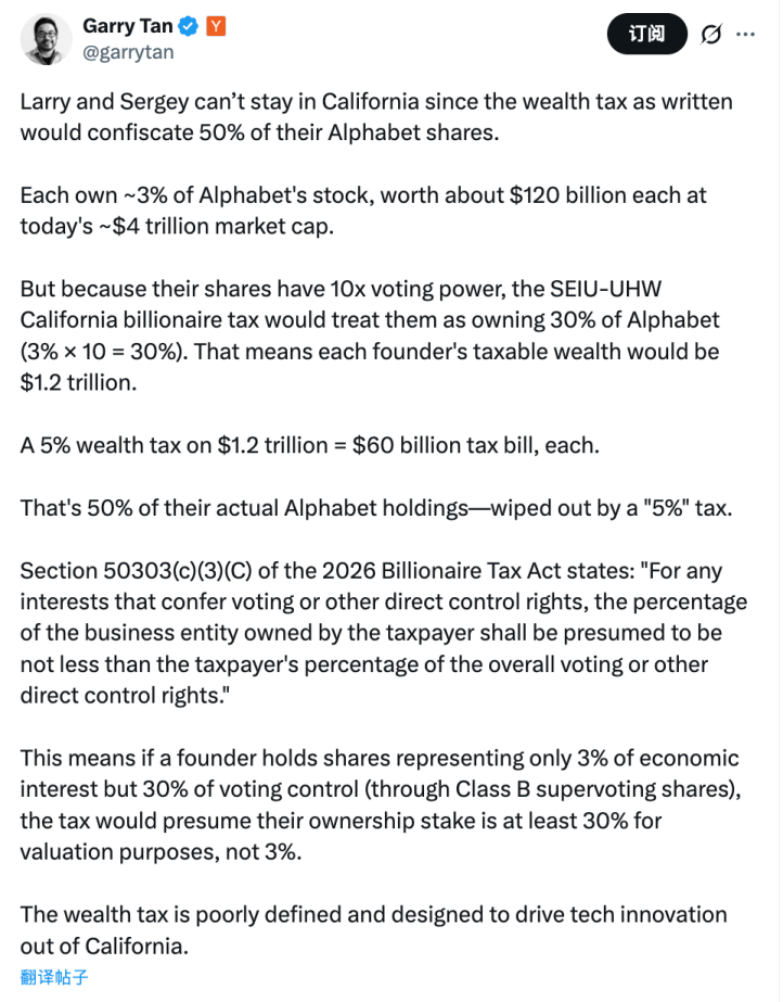 提案还没有通过,甚至预计到 11 月才会公投,但是其中设定了“1 月 1 日” 的追溯日期,也就是说,1 月 1 日开始是加州纳税人且是亿万富翁的,就在征收之列。