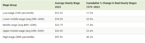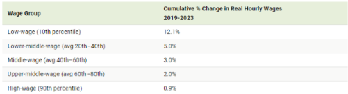 而 2019 年以前的四十多年,高收入群体的经调整时薪增速高于低收入群体。