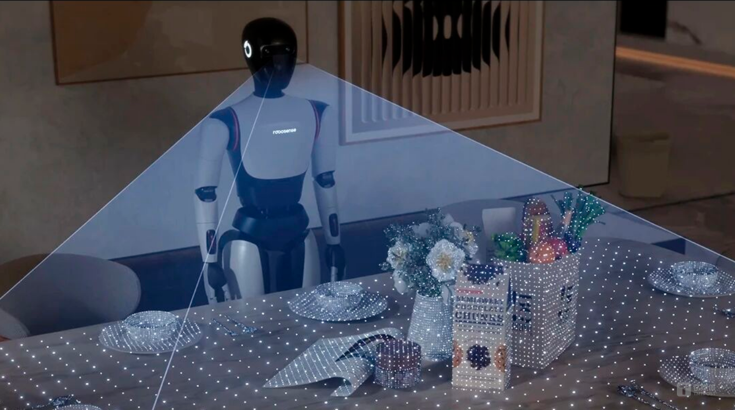 其中,RoboSense 速腾聚创将机器人“ 配送小哥” 搬到 CES 的舞台,可全流程自主完成了从礼品打包、运送、拆包到箱子回收的长程任务。而在这一系列任务的背后,则是速腾聚创自研的“ 手眼协同” 方案支撑,该方案整合了其自研的 VTLA-3D 操作大模型、机器人之眼 Active Camera 及多自由度灵巧手等多项核心技术。