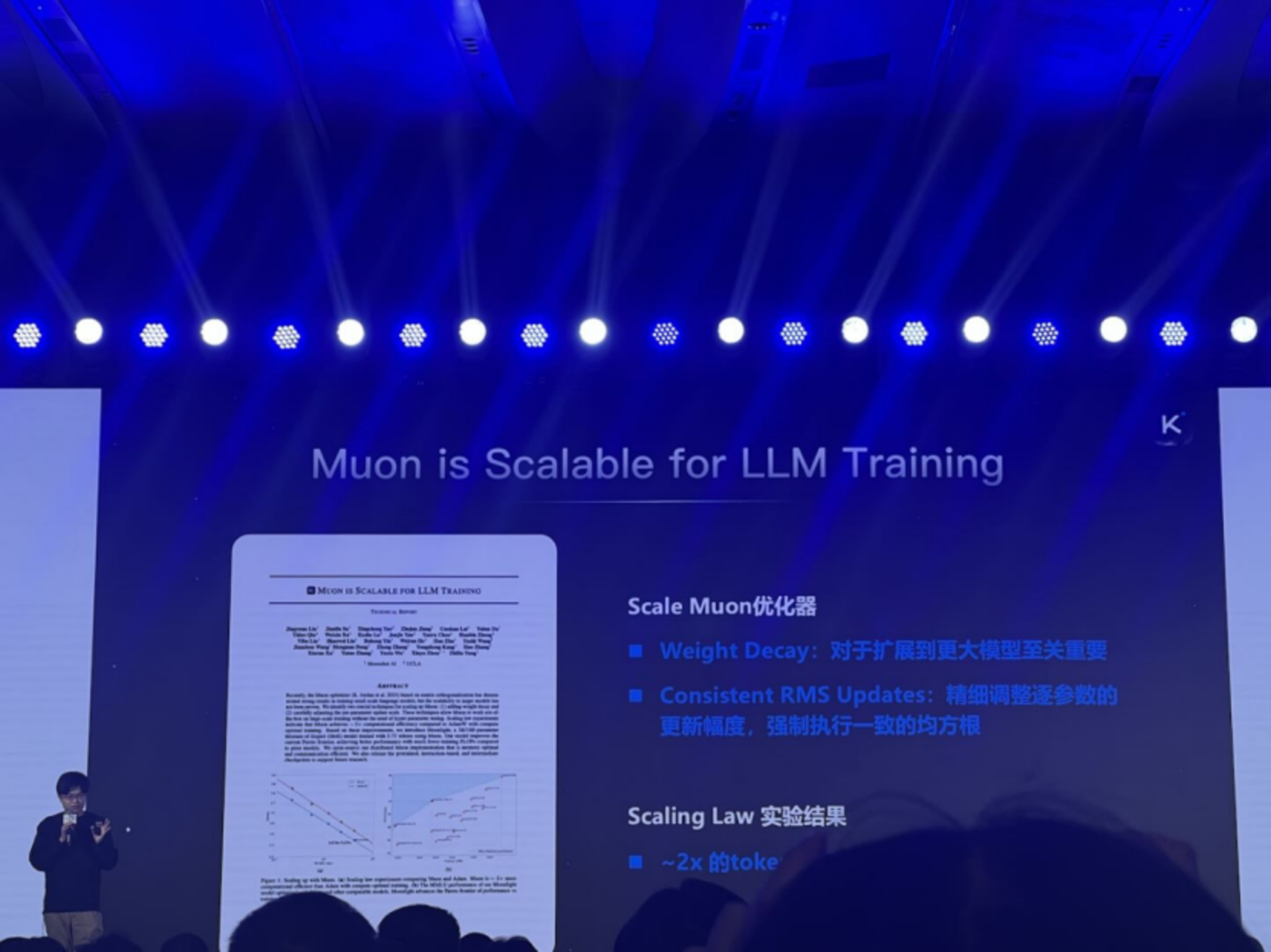 「我们发现可能基于 MUON 二阶优化器,它的效果会非常好,体现在它有两倍的 Token Efficiency 的提升。」 在月之暗面 CEO 杨植麟的分享中,他反复提到 Token Efficiency 这个概念,「你的 Token Efficiency 越高,意味着你可以用尽可能少的 Token 得到一样的效果。」