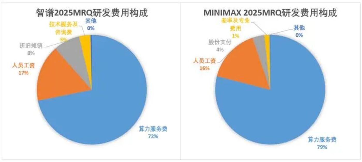 3) 智谱和 MiniMax 的研发开支 70%-80% 花在算力上