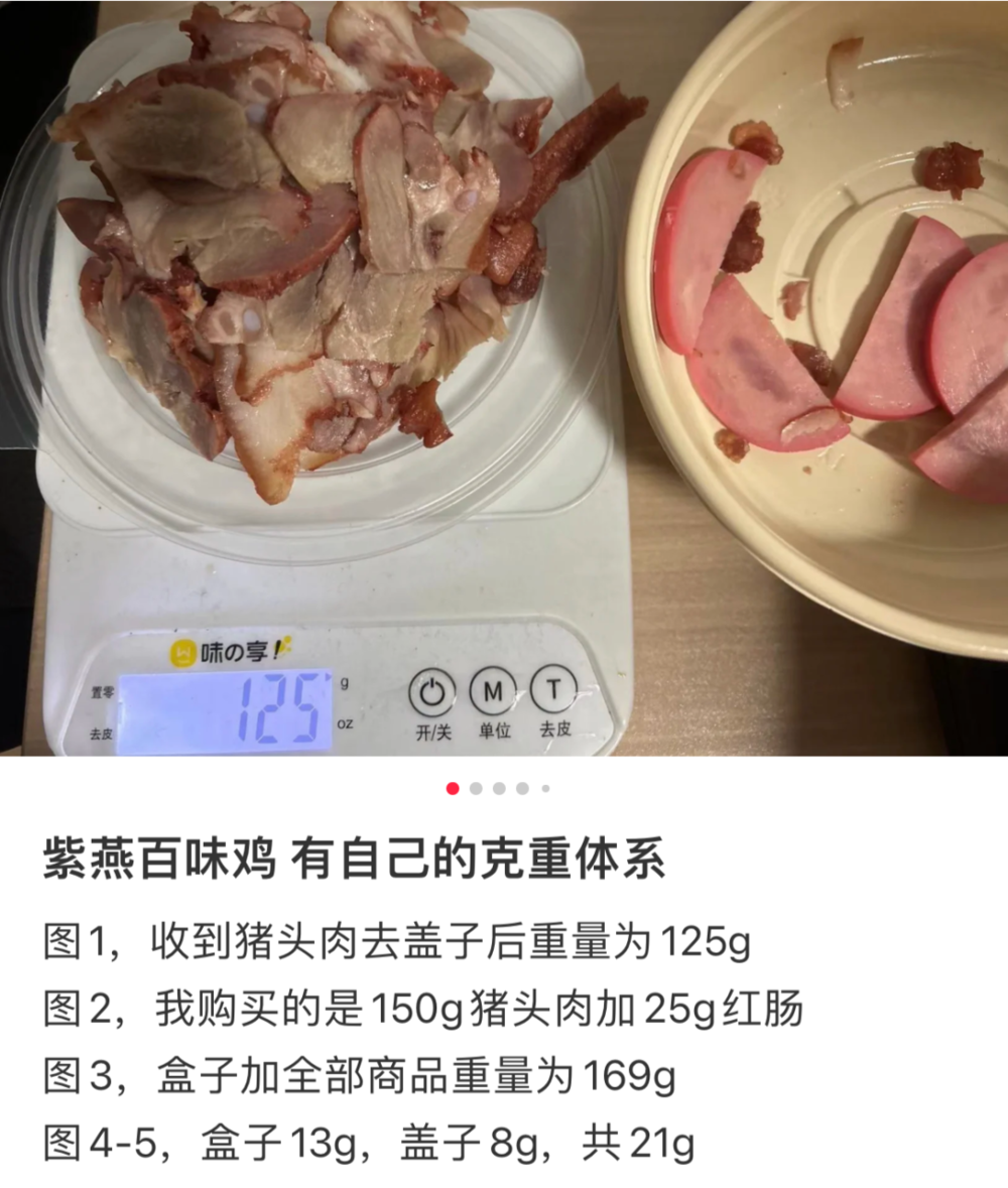 鸡贼的还有计量方式,你以为外卖平台上标记的重量是裸重,其实是连盒带盖的总重量: