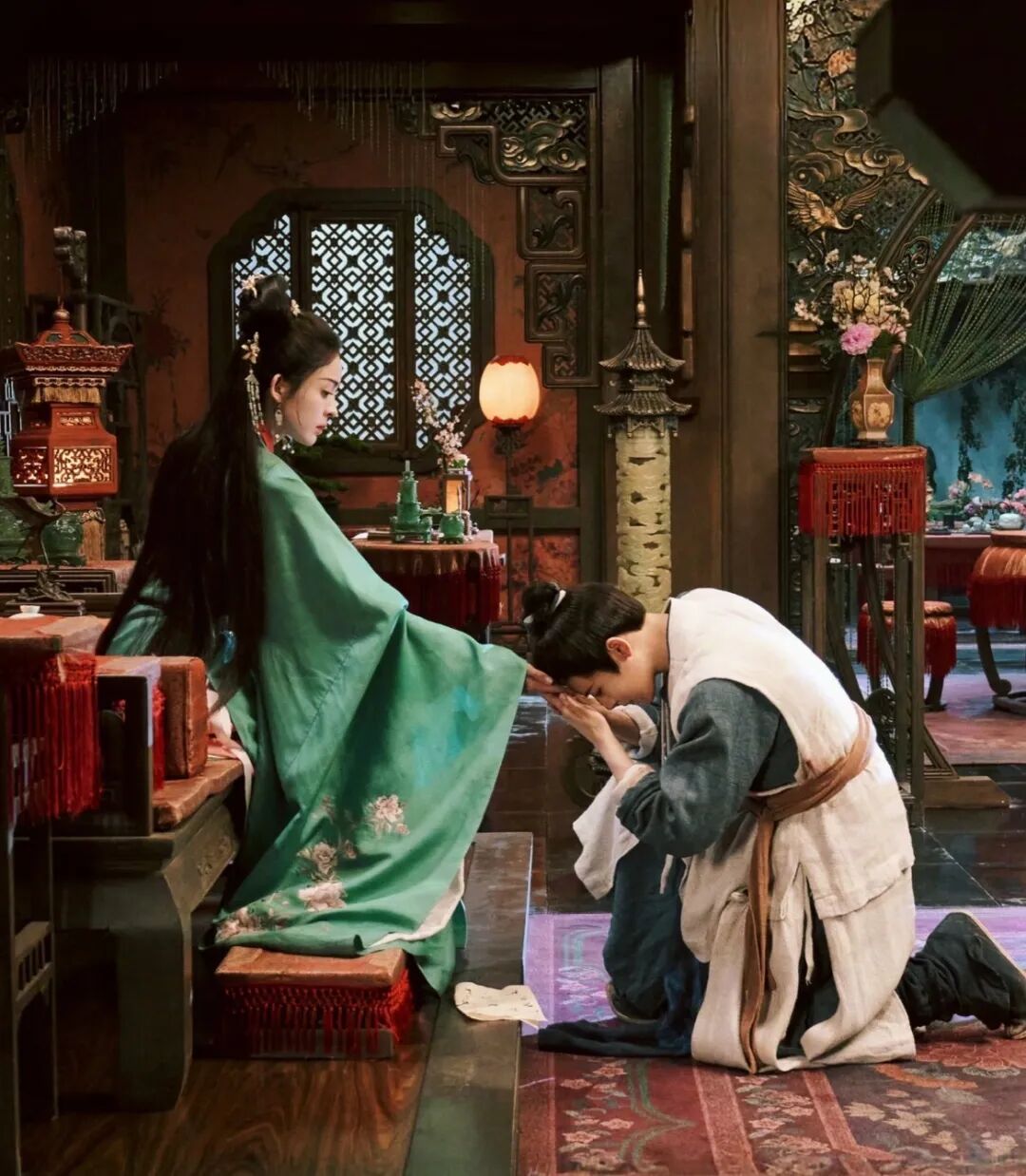 坦白说,打开 《玉茗茶骨》 前几集,小鱼还是被爽到过的。于正很懂事地调转了传统言情剧里男女主角定情的镜头权力,在空间上永远让娜扎处于上峰,而侯明昊在下。