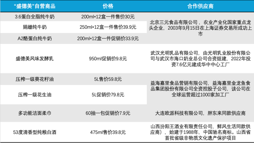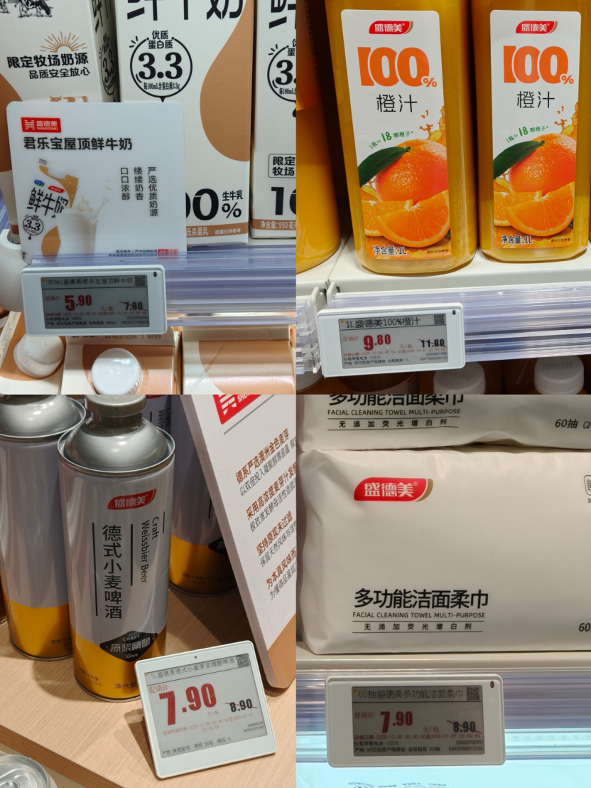 具体到长申超市,相较于此前的商品结构,其新店型的自营商品矩阵已实现显著扩容。除了前文提及的自营烘焙品类外,“ 盛德美” 系列自营商品已覆盖米面粮油、冷冻食品、乳制品等多个民生品类。