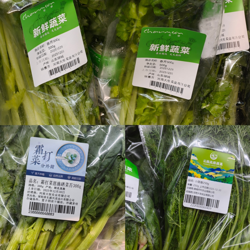 身为商务部认定的“ 农超对接” 示范单位,大张的生鲜品类丰富度同样颇具竞争力。除了产地直采的各类叶菜,店内还引入云南分装的高原菜,以及由深圳市东源兴进出口有限公司供应的霜打菜等特色品类,满足消费者多元化需求。