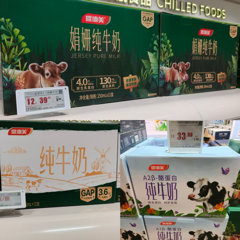 以乳制品为例,长申超市此前仅推出一款与君乐宝合作的低温鲜牛奶,如今则新增多款常温纯牛奶单品,包括 3.6g 蛋白全脂纯牛奶、娟姗纯牛奶以及 A2 酪蛋白纯牛奶等,满足不同消费群体的细分需求。