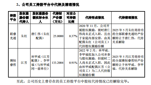 而其中的股权激励操作更显蹊跷,2020 年 11 月,公司向尚未入职的唐仁伟实施股权激励,对应持股比例 0.37%,股权由其配偶、公司员工朱红代持;2022 年 2 月,又向尚未入职的林甲威、李甲福实施股权激励,对应持股比例 0.91%,股权由林甲威配偶、公司员工江芳为二人代持。上述三人皆在未入职的情况下获得公司股权激励,而联讯仪器在申报稿中,并未详细披露唐仁伟、林甲威、李甲福的个人履历,其为何能享有这一特殊激励的原因,目前尚无明确答案,也让此次股权激励的合理性备受市场关注。
