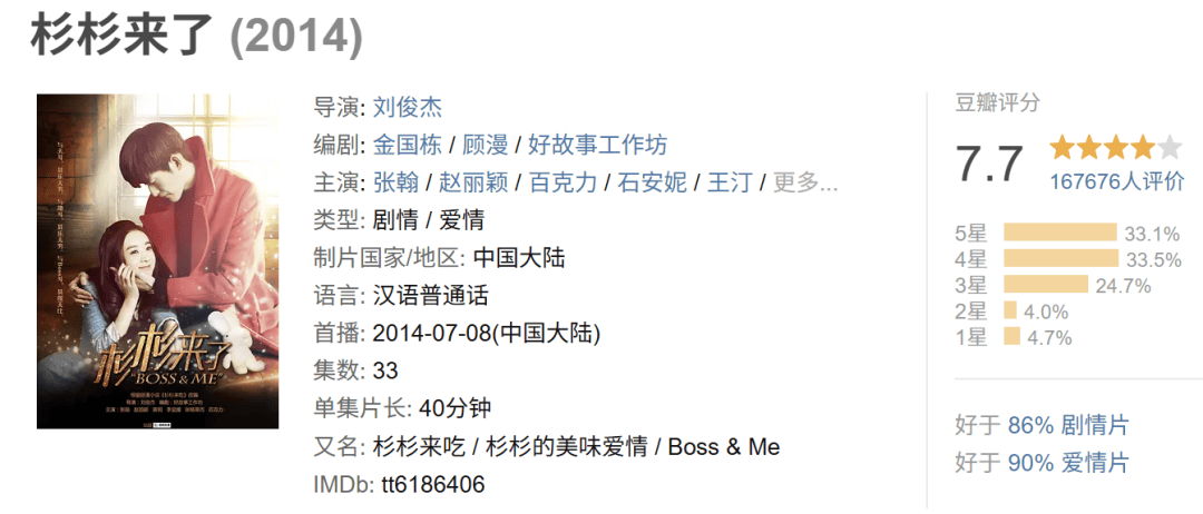 事实上,顾漫 IP 虽缔造了拍一部火一部的连胜“ 神话”,可口碑却是呈现下滑趋势,豆瓣评分最高的 《杉杉来了》 也没能迈入 8 分门槛。