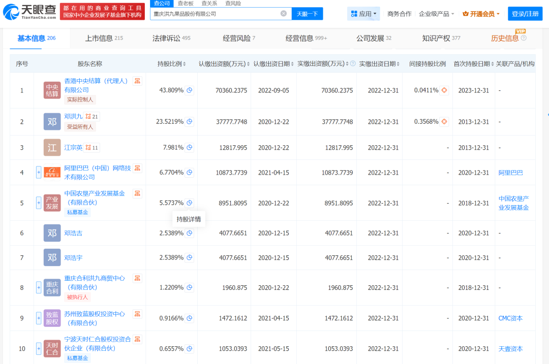 另一边,洪九果品作为 B 端水果经销商,凭借“ 端到端” 的产业链故事同样发展迅速,天眼查显示,上市前就获得包括阿里在内的一众明星资本背书,2022 年洪九果品成功登陆港交所,市值一度逼近 670 亿港元。以销售收入计算,洪九果品在当年是国内最大的榴莲分销商和进口火龙果分销商,规模扩张同样被其视为核心战略。