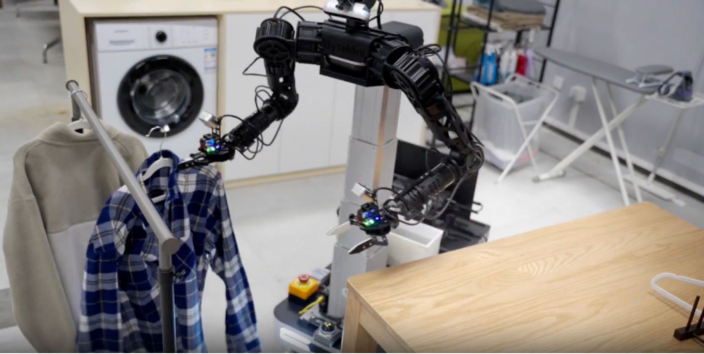 为此,字节还同步开发了通用双臂移动机器人 ByteMini,搭载 GR-3,形成一套完整的解决方案。