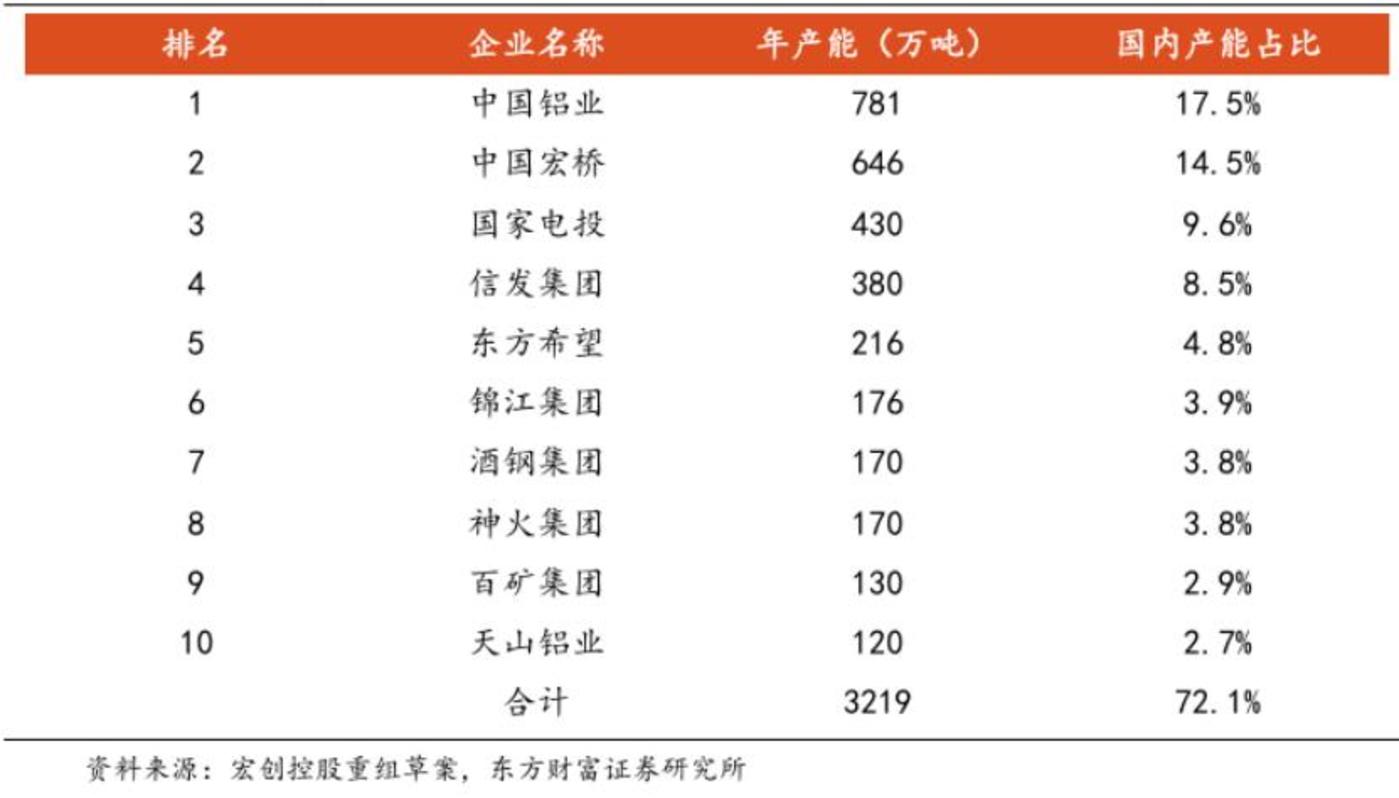 ●从产能占比来看,中国铝业及中国宏桥居于前列。在铝价格弹性的背景下,产能上限决定了企业的盈利上限。