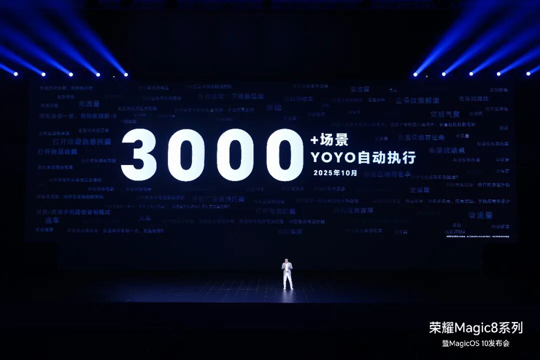 荣耀发布了搭载 YOYO AI 智能体的 Magic 8 系列,定位为自进化 AI 原生手机。MagicGUI 多模态感知大模型加持,大幅提升 YOYO 学习能力,2025 年 7 月,YOYO 仅支持 200 多个场景的智能调用,10 月已大幅提升至 3000+,摆脱了“ 出厂即巅峰” 的传统限制。