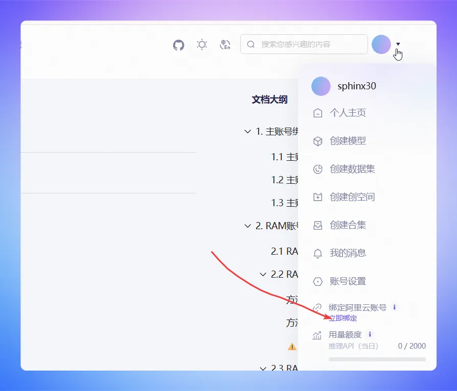 登录 (可用 GitHub) 魔搭社区,打开下方地址,点击 「查看代码范例」 进去复制 API 代码