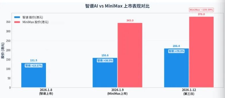 毕竟,1 月 8 日与 9 日,智谱和 MiniMax 上市相隔仅仅一天,但市场给出的反馈冷暖分明—— 智谱首日收涨 13.17%,MiniMax 则暴涨 109.09%。这背后正是由于双方的商业化差距。