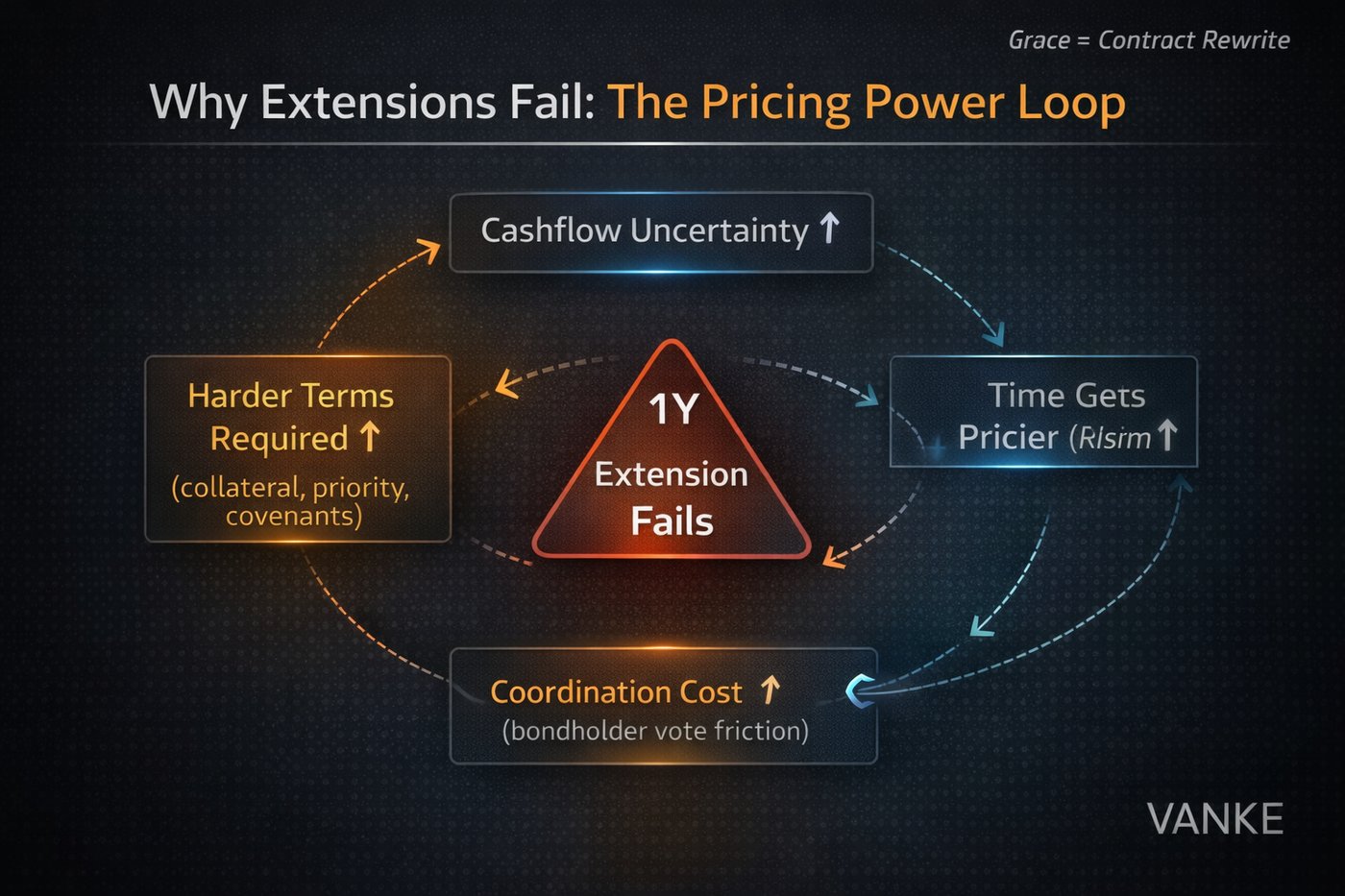 这组结果更像条款语言而非情绪语言。债权人愿意给短期缓冲,避免风险在短时间内扩散,但不愿在缺少硬约束与硬兑现的情况下,把合同改写成一年期承诺。对企业而言,这不是简单的好或坏,而是谈判进入更成熟阶段:要拿到更长的时间,就必须用更硬的结构来交换。