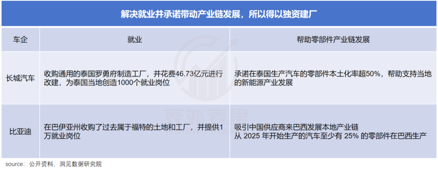 即使是在没有本土汽车品牌、对发展新能源极其迫切的地区,中国车企也很 「懂事」。长城汽车进入泰国市场时,不仅斥 50 亿巨资改造通用旧工厂,还把零部件厂也带了过去。