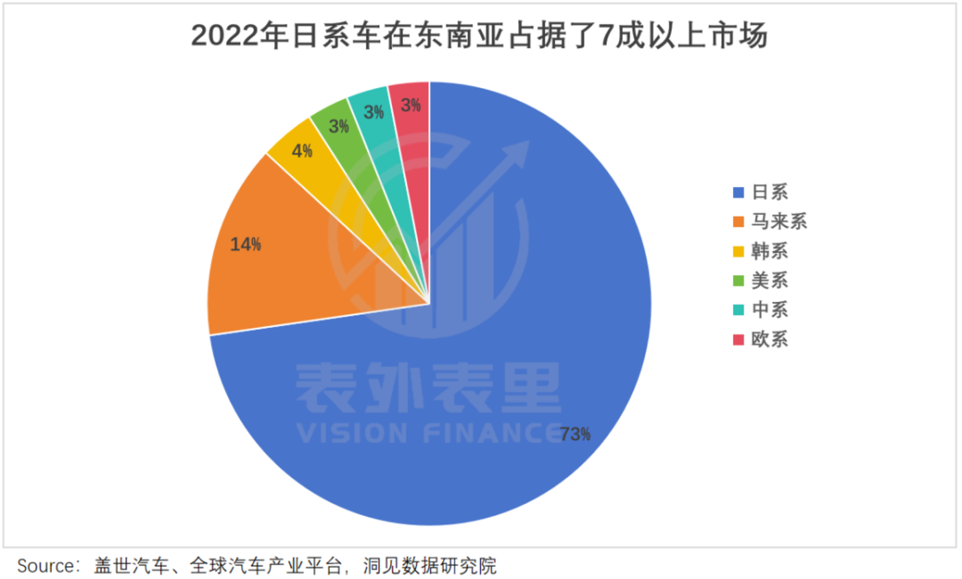 当然,这样的砸钱开荒只适合增量市场,海外更多的是山头林立、坚若磐石的成熟市场。典型如东南亚,日系车曾占据 73% 的市场份额,势力庞大、盘根错节。