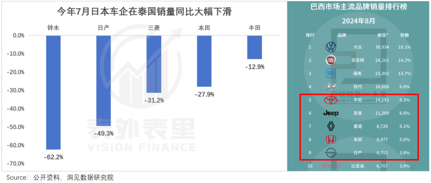 在南美、中东等日系车强势区,中国车也慢慢进入主流,比亚迪巴西高管甚至扬言 「2 年内迈至销量榜第五」,参考当地最新榜单,其剑指的正是丰田、本田、日产三巨头。