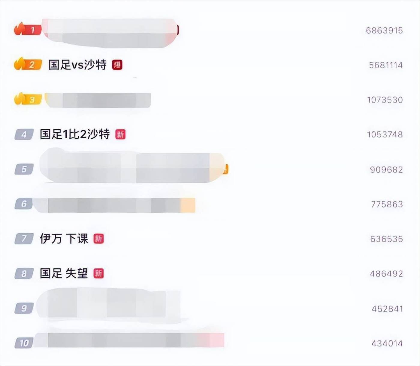 一个肉眼可见的例子是,在过去几年时间中,凡是有国足的正式比赛,无论结果是输是赢,都会稳稳贡献多条热搜,这一点也是其他运动项目无法比拟的。