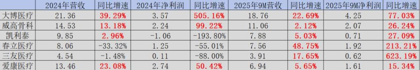 转机自 2024 年开始出现,爱康医疗业绩开始呈现稳健复苏态势,全年营收同比增长 23.08%,净利润同比增长 50.42%;2025 年上半年增长态势持续延续,实现收入 6.94 亿元,同比增长 5.6%,净利润 1.61 亿元,同比增长 15.34%。