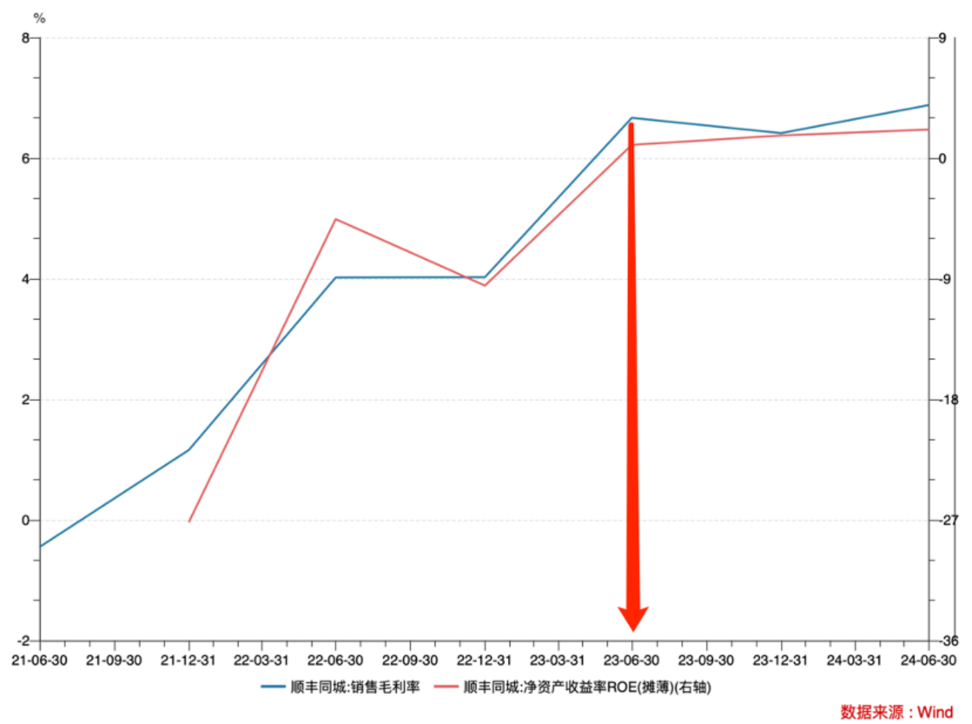 在一个高度依赖规模效应的行业里,一旦 「起量」 就必然会体现在财务报表中,2023 上半年,顺丰同城毛利率和 ROE(净资产收益率) 双双崛起,也恰在此时企业开始正式进入盈利周期。