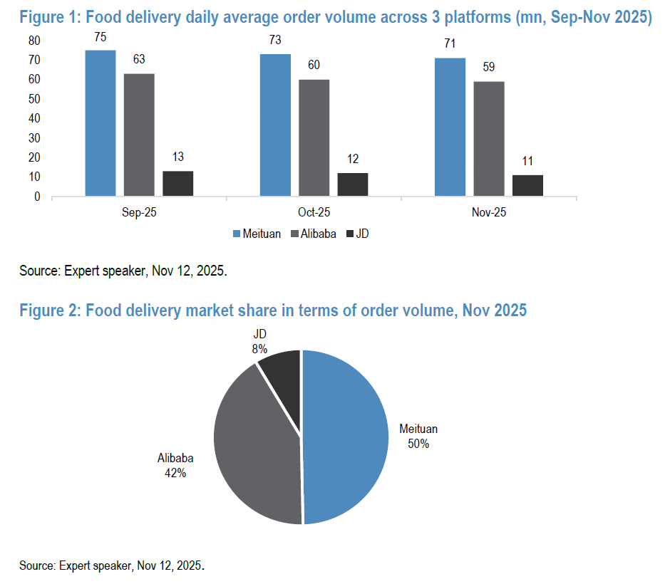 美团外卖、饿了么+淘宝闪购、京东外卖的市场份额分别为 50%、42%、8%