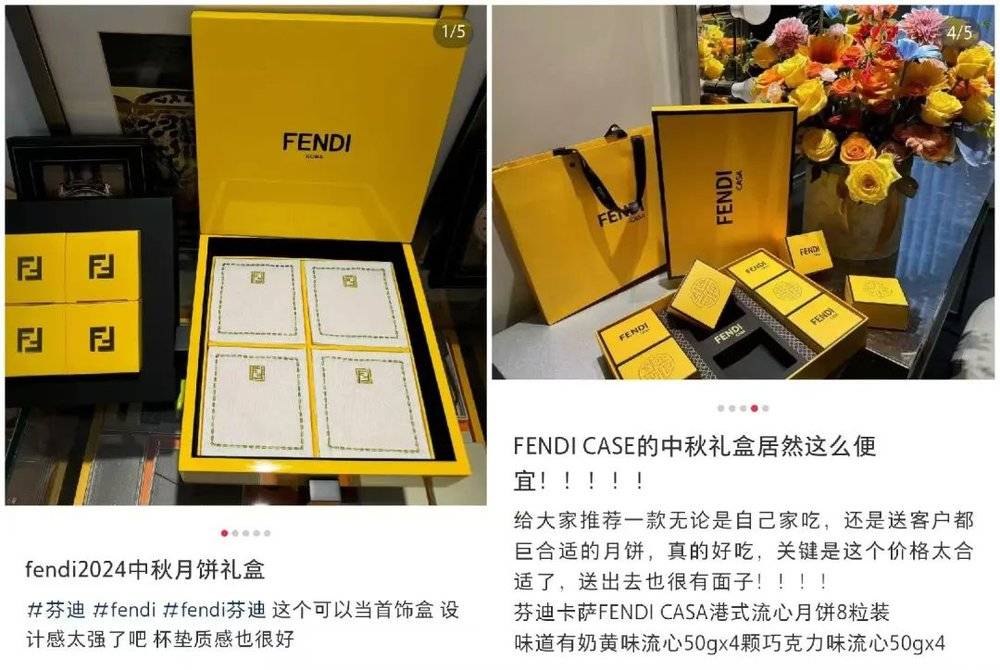 左侧为正版 FENDI 中秋礼盒,右侧为盗版 「芬迪卡萨中秋礼盒」